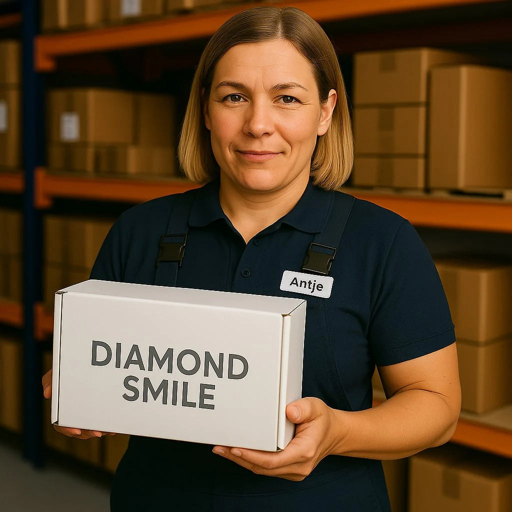 Varje dag skickas hundratals paket från Diamond Smiles logistikcenter nära Leipzig – fulla av högteknologiska blekningspaket, innovativa formuleringar och ett enkelt mål: